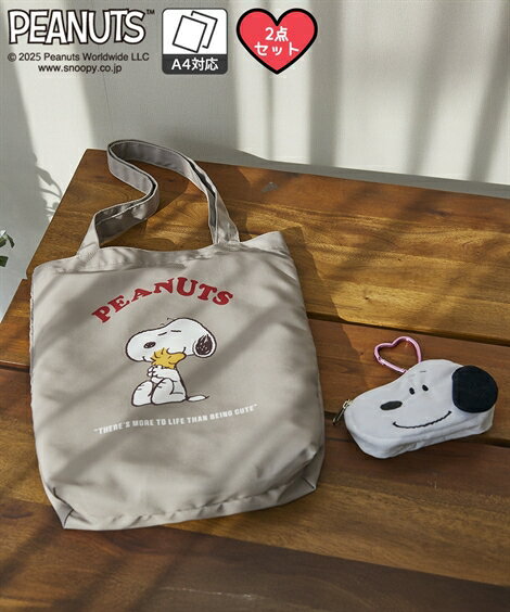 スヌーピーフェイスポーチ+スヌーピープリントトートバッグの2点セット